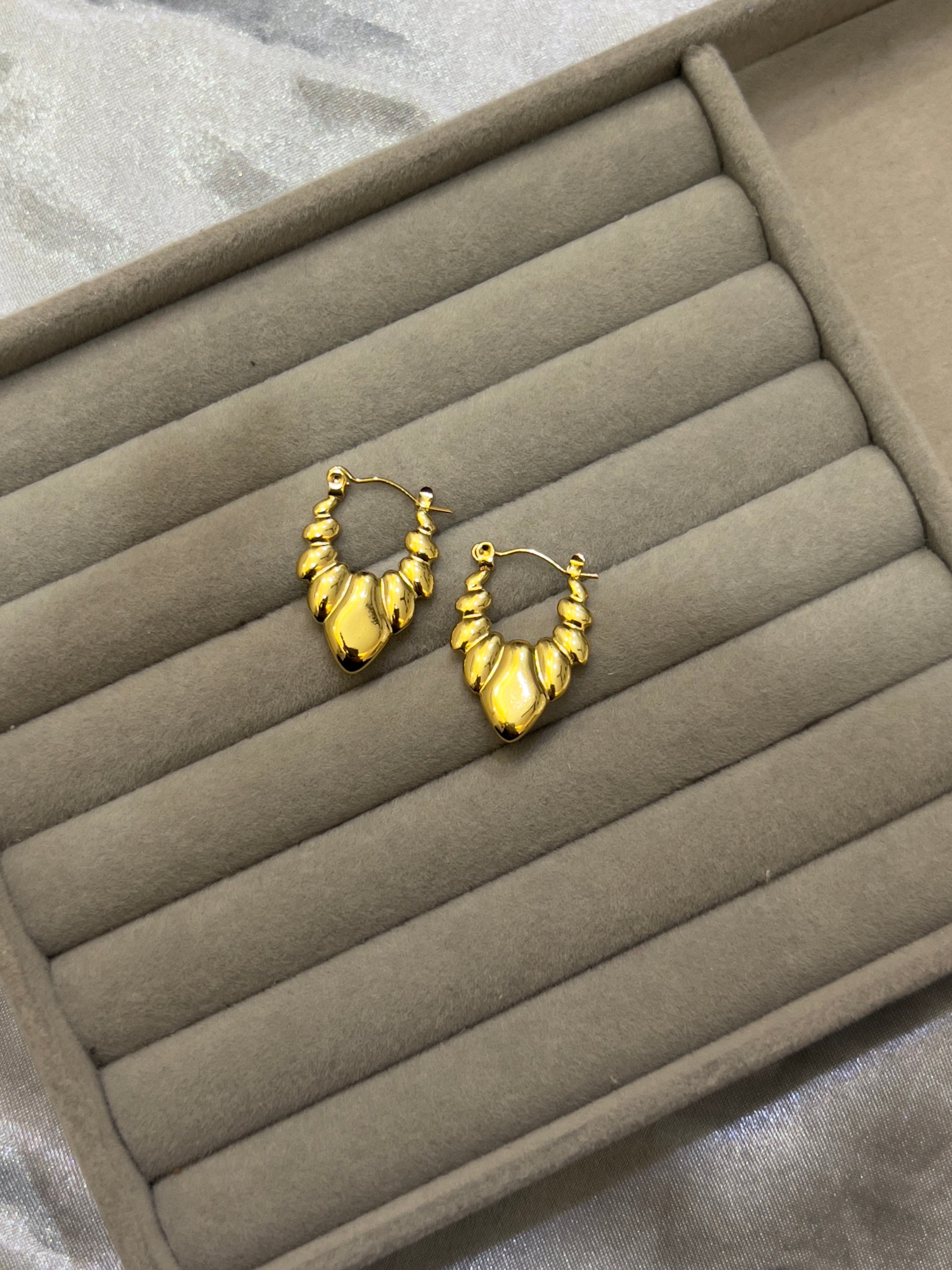 Statement-making yet elegant, the Bold Heart Hoops feature a chunky gold finish with a sculpted heart design that instantly stands out. Perfect for elevating everyday outfits or adding a bold touch to evening looks, these hoops are made to be noticed.