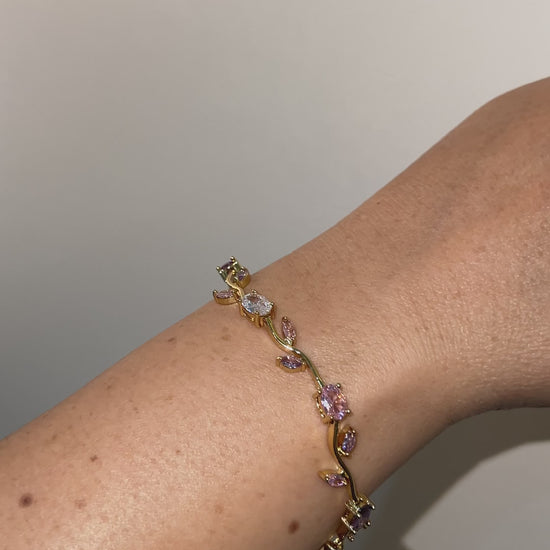 This Petal Shine Bracelet is a stunning accessory, designed to captivate with its unique arrangement of petal-shaped stones in soft pink and lavender hues. Crafted to be anti-tarnish and waterproof, it promises lasting brilliance and durability for everyday wear. The high-quality materials ensure that this piece is made to last long, maintaining its shine and elegance over time.